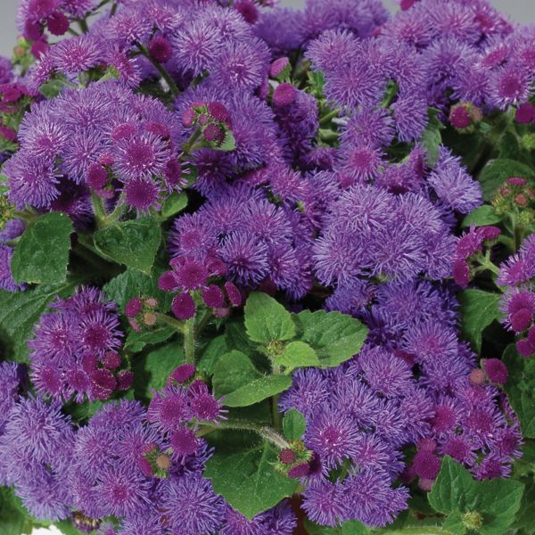 The Ageratum Artist Blue, Ageratum hybrid ‘Agsantis’, has beautiful true blue blooms.