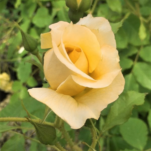 First, this is an easy rose and highly resistant to black spot and winter cold. It blooms it’s head off from summer through fall, and in a wonderfully yummy apricot gold that plays nicely with other colors in the garden. The fruity fragrance is also delightful!