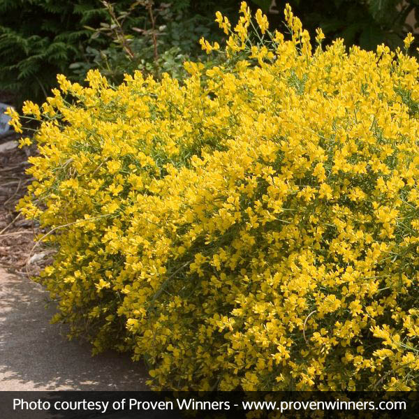 This is a new, more floriferous, and longer blooming selection of Genista. The shocking yellow pea-like flowers come in waves along the branches in early spring.