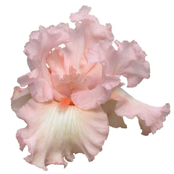 Iris Beverly Sills, Iris germanica ‘Beverly Sills’, features uniform coral pink self with lacy edges and impeccable form. An extremely fast grower and very heavy bloomer, ‘Beverly Sills’ blooms early to mid season.