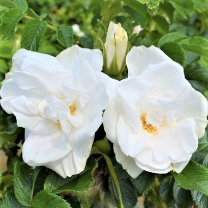Blanc Double de Coubert is a marvel of nature, with flowers and foliage of exceptional beauty. Each impressive, 3 to 5-inch blossom is semi-double with a refined, pristine-white hue./p>