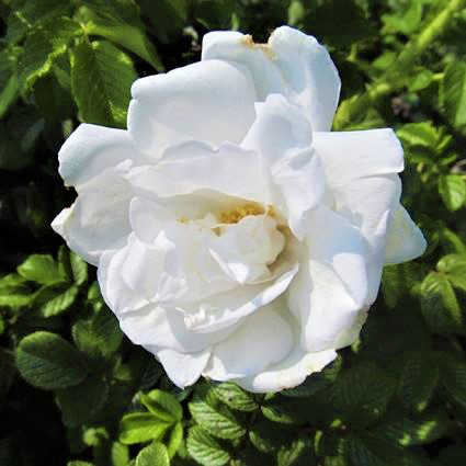Blanc Double de Coubert is a hybrid, rugosa rose that is naturally disease resistant. Overall, this hardy rose even has some shade tolerance. The flowers work well cut for vases or dried for crafts. The hips are even useful for jams and decorative purposes, especially for winter.