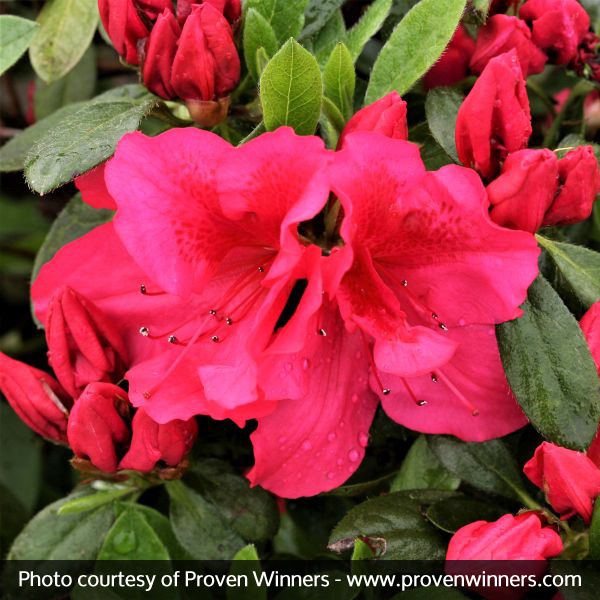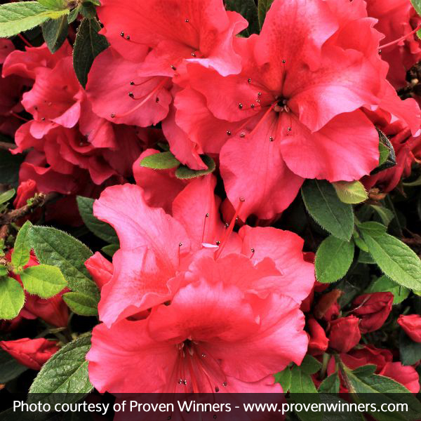 Bloom-A-Thon® Red Azalea (Rhododendron ‘RLH11P2’), is an improved evergreen variety with fantastic flowers. It’s perfect for mass plantings, a mixed border or even a single, specimen plant in your yard. This would be excellent as a container planting for your patio or front porch.