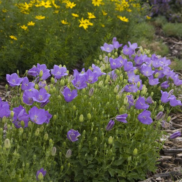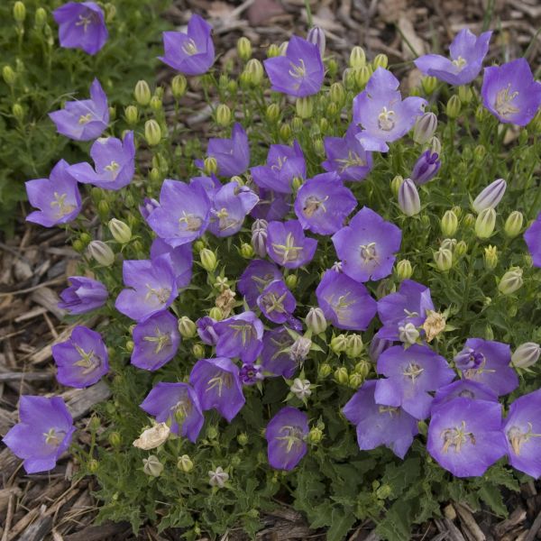 Blue Clips Campanula carpatica ‘Blue Clips’, will fill your planter or garden with lavender-blue, bell-shaped flowers. Green foliage quickly gives way to blue blooms that blanket this fast-growing perennial in summer; their faces gazing up toward the sky amid the verdant mounds of foliage.