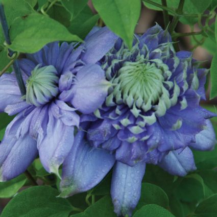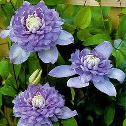 Clematis Blue Light, Clematis ‘Vanso’, is an exceptional Clematis that boasts fully double 5-6″ flowers of violet blue.