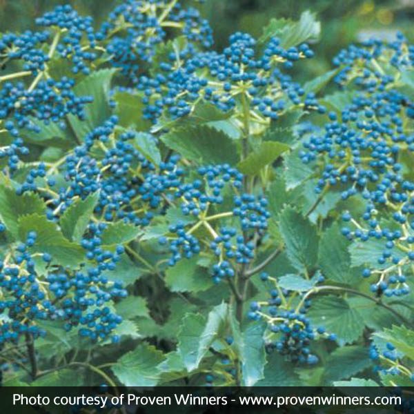 Plant additional Arrowwood Viburnums (Viburnum dentatum) nearby to pollinate Blue Muffin or you will not see the fruit display. We offer several Arrowwood varieties.