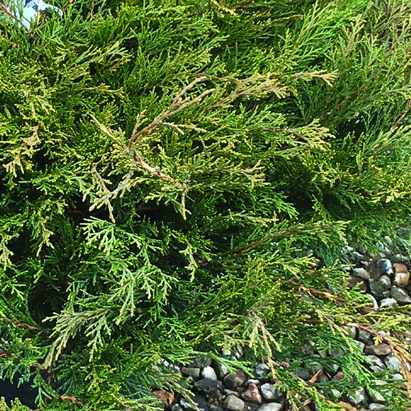 For a showy look in a very low-growing conifer, select Calgary Carpet® Juniper (Juniperus sabina ‘Monna’). It features bright green foliage that is nice and soft.