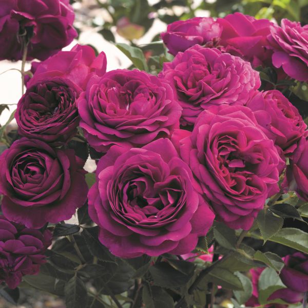 A marvelous achievement of modern rose hybridization, the deep plum blooms will inspire you every time you study it. The flowers are quartered, old-fashioned and cuppy. Fragrance is mildly fruity.