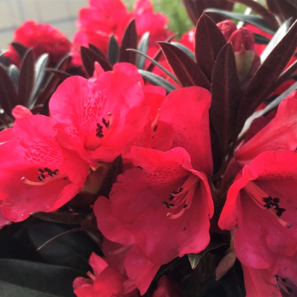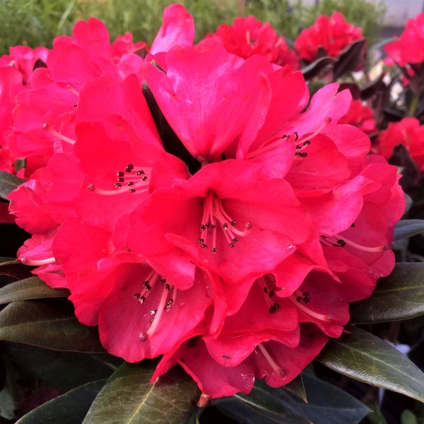 This is such a standout rhododendron variety with attention-grabbing clear cherry red flowers held aloft on sturdy trusses. But really, it’s the bicolored foliage that delivers the knockout punch.