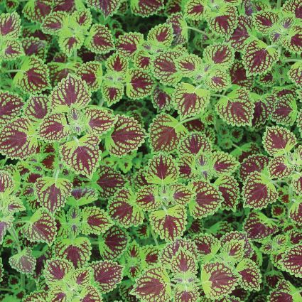The Coleus Chocolate Drop, ‘Coleus hybrid’, is a terrific trailing plant that has lobed, rounded green leaves and has a deep crimson center and crimson venation.