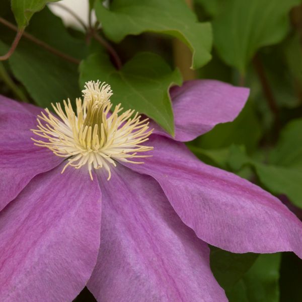 Clematis Vino, Clematis ‘Polulvo’, features stunning, violet-red 7″ flowers with contrasting creamy-yellow anthers in the spring. What an excellent flower for cut flowers and container growing!
