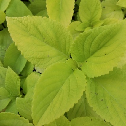 The Coleus LifeLime, ‘Coleus hybrid’, has chartreuse-colored foliage. These new, bigger, sun loving varieties have revolutionized contanier gardening. The brilliant colors explode in sunny locations.