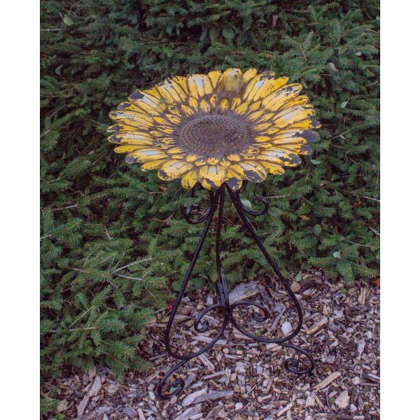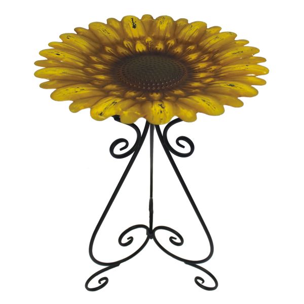 The 24-inch flower shaped bowl attaches to a sturdy, scrolled metal base and will be the decorative outdoor delight of humans and winged creatures alike!