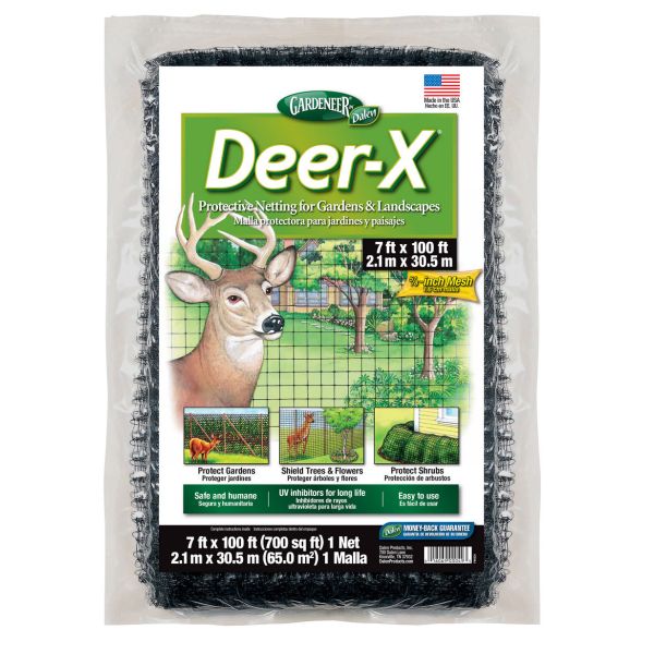 - Protects shrubs, trees, and vegetable gardens from destructive deer