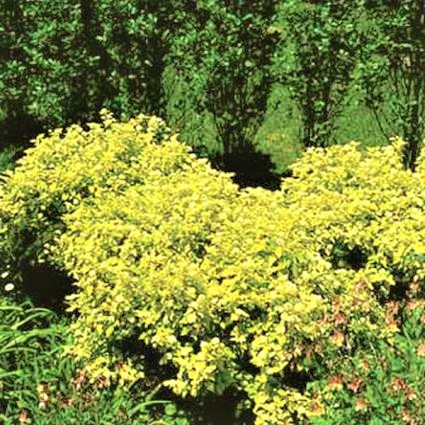 The Ninebark ‘Dart’s Gold’, Physocarpus opulifolius ‘Dart’s Gold’, is named for its broad three-lobed golden spring foliage, which turns lime green in the summer. It matures to 4′-5′ with an equal spread.