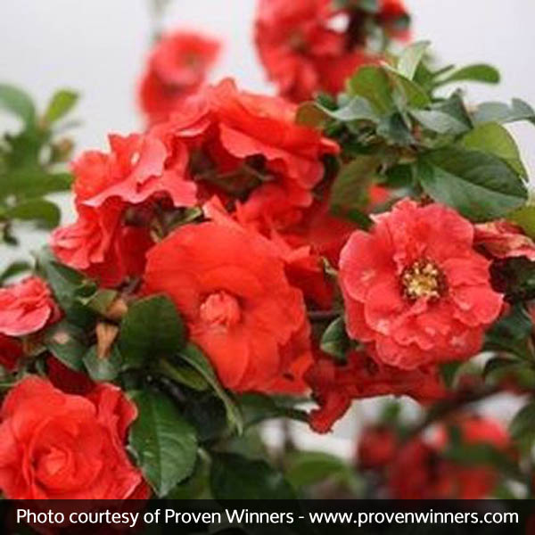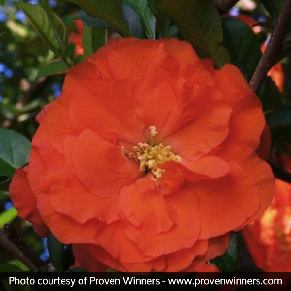 The Quince, Double Take Orange Storm, Chaenomeles ‘Orange Storm’, produces a spectacular early spring display of large flowers with intense orange color.