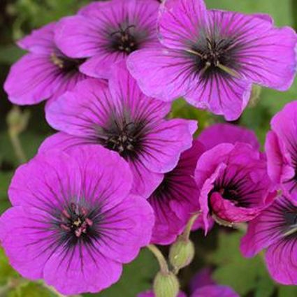 This Cranesbill is one of the most vigorous hardy geraniums and is ideal for the front of a sunny border, although it will cope with a fairly shady spot.