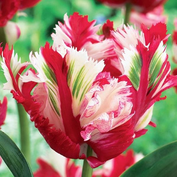 Estella Rijnveld Tulip far surpasses other Parrot Tulips, and their namesakes, when it comes to color and style. Its jagged-edged petals open almost flat to the sun and are streaked in fanciful deep pinks, lively greens and creamy whites. There is no other tulip with as much character as this one. No wonder it’s nicknamed Gay Presto!