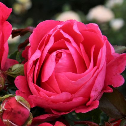 Fiji™ Eleganza® (Rosa ‘KORladcher’) is a wonderful rose that features huge flamingo pink blooms held aloft by short and sturdy stems. You’ll love watching tightly furled buds extend into that beloved classic hybrid tea blossom.