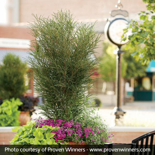 Create privacy in areas where space is at a premium. Fine Line is a fantastic backdrop for any shrub border. The airy texture and formal habit makes it excellent as a Thriller in exterior containers.