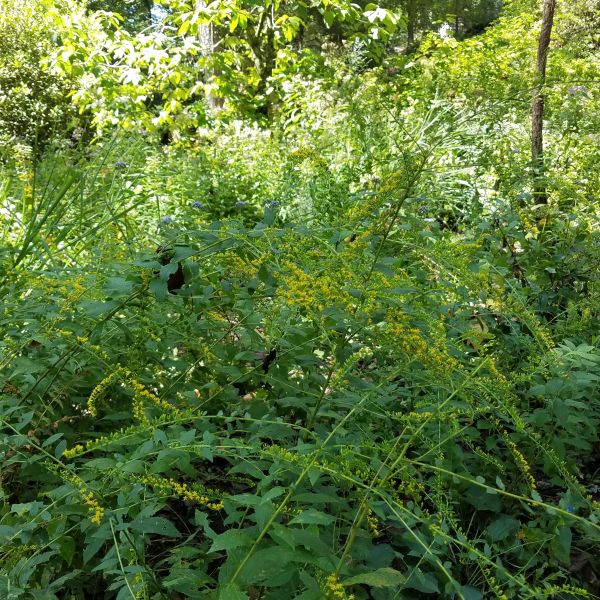 This is a compact, clump-forming perennial producing branching clusters of golden-yellow flowers. This goldenrod blooms late summer-fall amid rough, hairy stems. The flower clusters radiate out in all directions and resemble streaming yellow fireworks, which is where it gets its name. Contrary to popular belief, this is not the cause of fall allergies, like Sneezeweed or other Goldenrod-type flowers, so plant with abandon!