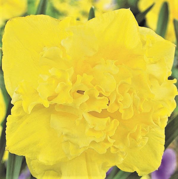Flyer Daffodils are a double daffodil, meaning instead of a cup in the center, it is filled to the brim with ruffled petals that create a playful look that is full of life. This specimen is a bright yellow. It will make your garden look as if it has bursts of sunshine throughout!