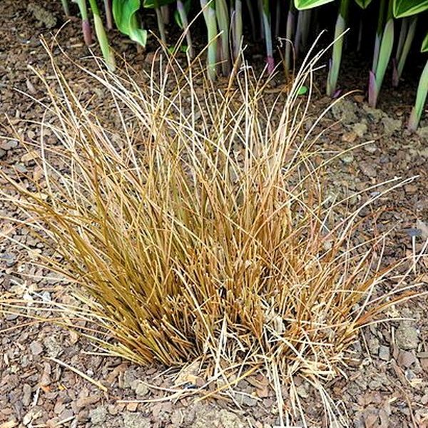 This little sedge is a striking evergreen clump of bronze-red foliage that fades ombre-style to a flaxen color at the tips. This effect is pretty all the time, but when it is backlit by the rising or setting sun it is breathtaking! This is a versatile plant that thrives in the damp areas around pools, ponds and fountains. It is a perfect choice for those poorly-drained pockets so often found in dry stream beds or around large landscape boulders. It brightens up low points in the landscape and tidies up the base of a fountain. It is one of the only plants that will thrive in those over-splash areas from waterfall features, too.