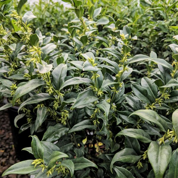 What a joy! Fragrant Sweetbox will give you weeks of bloom that smell like hyacinths. It is densely covered in lush deep green foliage that makes it a nice backdrop to flowers.
