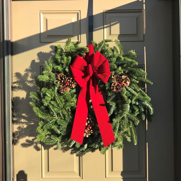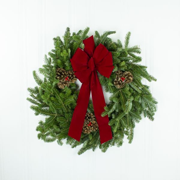Our plant experts have carefully selected some of the most fragrant boughs. As your guests arrive, they’ll love the wintery, fresh scent of the fir and pine. Each wreath is between 24 – 26″ wide.