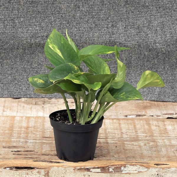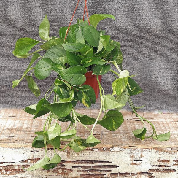 Golden Pothos (Epipremnum aureum) is an angelic Devil’s Ivy. This is a lovely, variegated vining plant that will survive, even when given a bit of neglect.