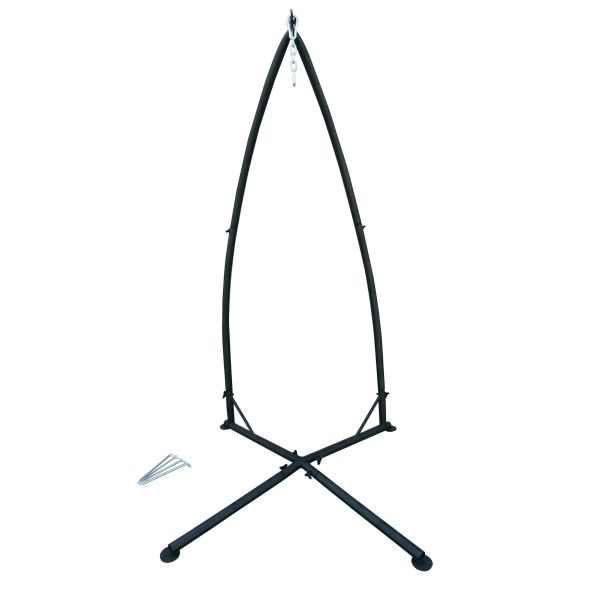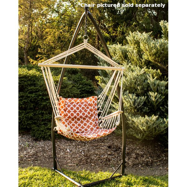 The X Base Hanging Chair Frame is a perfect match for our Hammock Chairs or almost any other kind of suspended seating product. The X shaped base increases the stability of the stand and the 5/8 inch ground stakes easily and safely secure the stand in your yard.