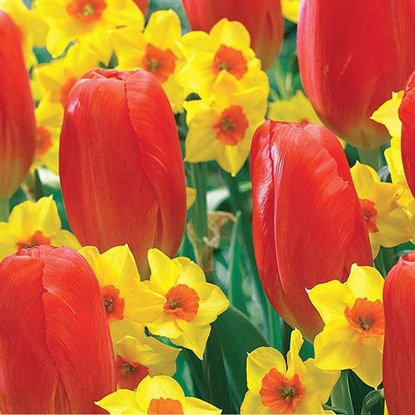 Happy Sunset Tulip and Daffodil Mix brings the vivid colors of the sunset right into your garden! With scarlet reds, bold yellows and delicate oranges, you’ll be able to enjoy the tranquility of a beautiful sunset for weeks each spring!
