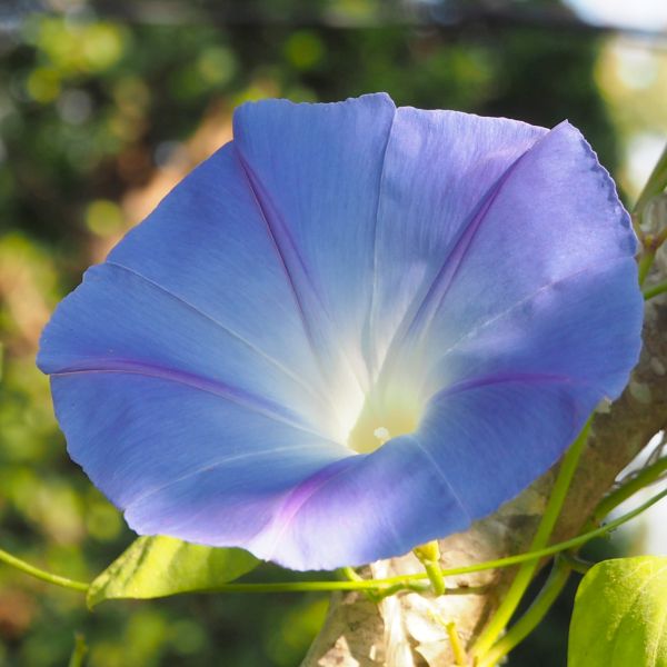 The Morning Glory Heavenly Blue, ‘Ipomoea tricolor’, has glorious 4 to 5 inch sky-blue flowers. They are called Morning Glory because blooms open in the cool of the morning. During the fall however, flowers open all day.