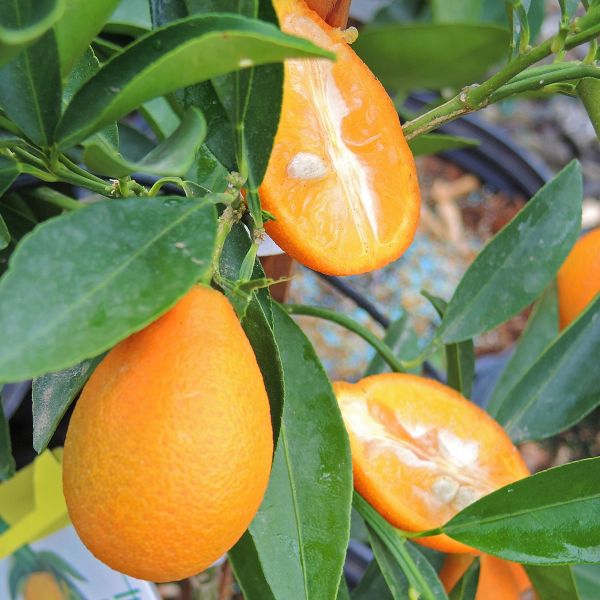 Deliciously fragrant Indio Mandarinquat – as the name suggests – is a cross between a Mandarin Orange and a Kumquat. From its parents, it inherited a “grown-up” citrus taste – mostly sweet, with a little sour for balance, like a sour Mandarin.