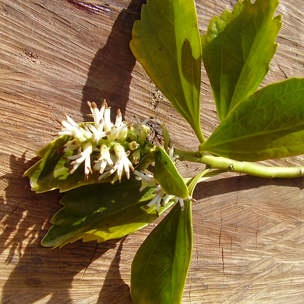Not to be outdone by the showy foliage, Japanese Spurge shoots up tiny white flowers in 1-2″ long spikes in early spring. The flowers are not particularly flashy, but on close inspection are quite attractive.