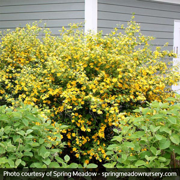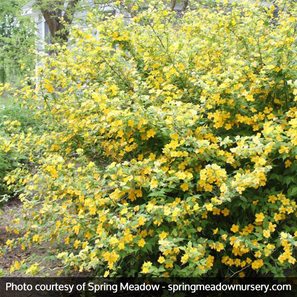 Kerria japonica ‘Golden Guinea’ can be used as an accent plant, en masses, as a hedge, as a privacy barrier, or in a small space. Easily grown in average garden soils making it an easy-going shrub that is widely adaptable. Order one today and bring some brightness into your garden!