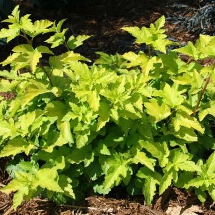 The hottest color in gardening the last few years has to be light green/chartreuse. Not only does it look great on its own, but it makes almost any color around it pop. Many plants that have this unique color require a little pampering, but not Lemon Candy Ninebark (Physocarpus opulifolius ‘Podaras 3’ PP#22362). Lemon Candy is covered in nicely ruffled chartreuse leaves from spring to fall and ninebarks are one of the most gracious plants you can add to your garden or landscape.