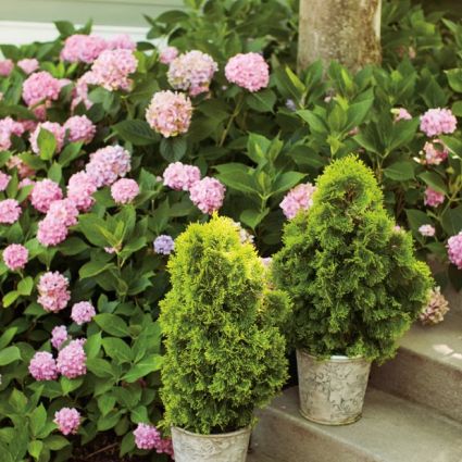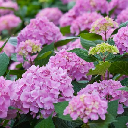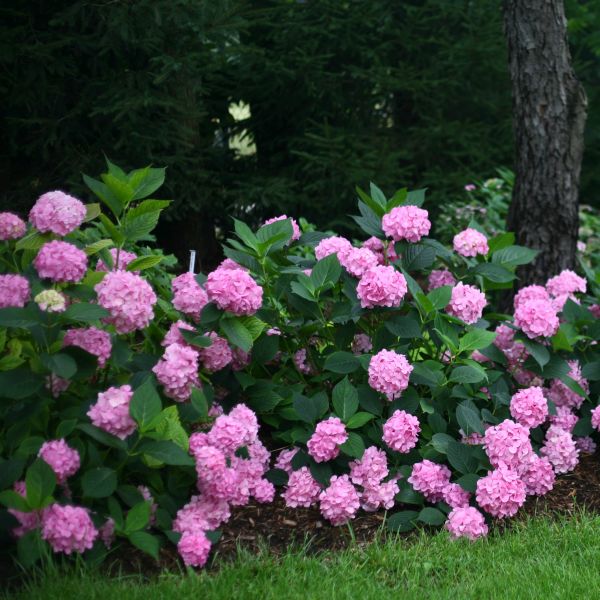 These floriferous varieties bloom on both new wood and old, which creates an incredible display of color. Let’s Dance Moonlight Hydrangea is a strong rebloomer with large, rich rose-pink (or blue depending upon pH) mophead flowers that are held on sturdy stems.