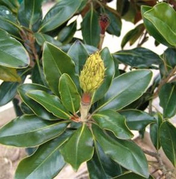 The decorative leathery, lustrous evergreen leaves are dark green on top and have fuzzy, rusty brown undersides. Be sure to include these leaves in cut floral arrangements and use to create elegantly festive seasonal wreaths.
