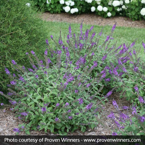 Blue Chip Jr. Butterfly Bush, Buddleia davidii ‘Blue Chip Jr.’ has a small stature but incredible blooms. Plant a few along an outbuilding for a decorative hedge, or just one in any spot for a lively focal point that’s sure to enliven even the most drab location. It has a gentle, rounded nature and compact habit. It’s a fast-growing bush that won’t take long to establish, and won’t demand your time and effort to maintain.
