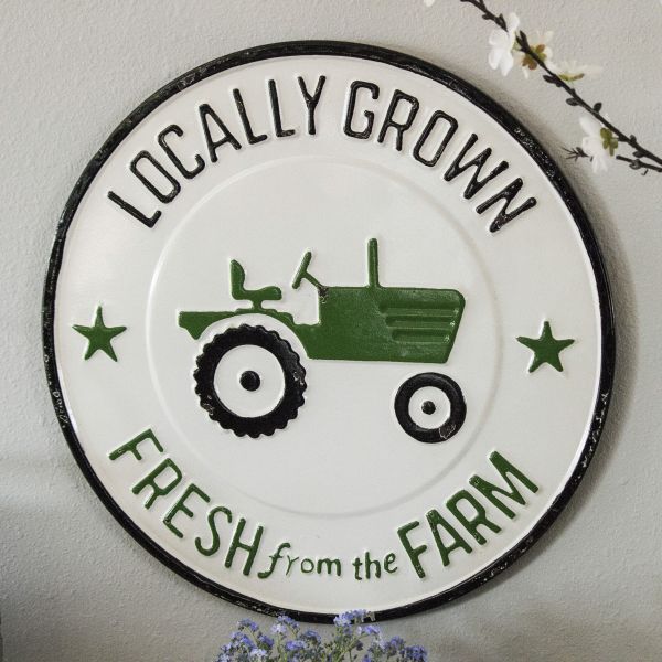 Locally Grown Green Tractor Metal Wall Sign – Garden Center Item