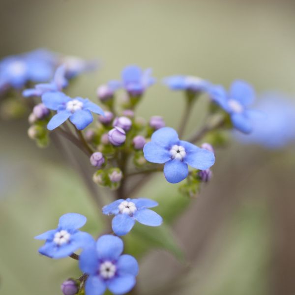 Brunnera ‘Looking Glass’ is grown as much for its heart-shaped leaves as it is for its forget-me-not flowers. Not tolerant of dry soils, bugloss love steady water and will reward you by reseeding and stretching its reach in your garden. It quickly fills in bare spots and fills in empty patches under the shade trees. (Light shade is the best for brunnera.)