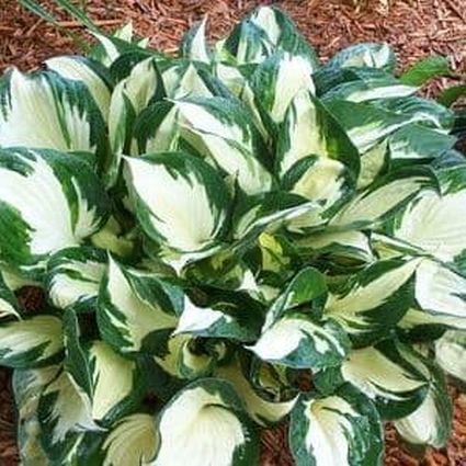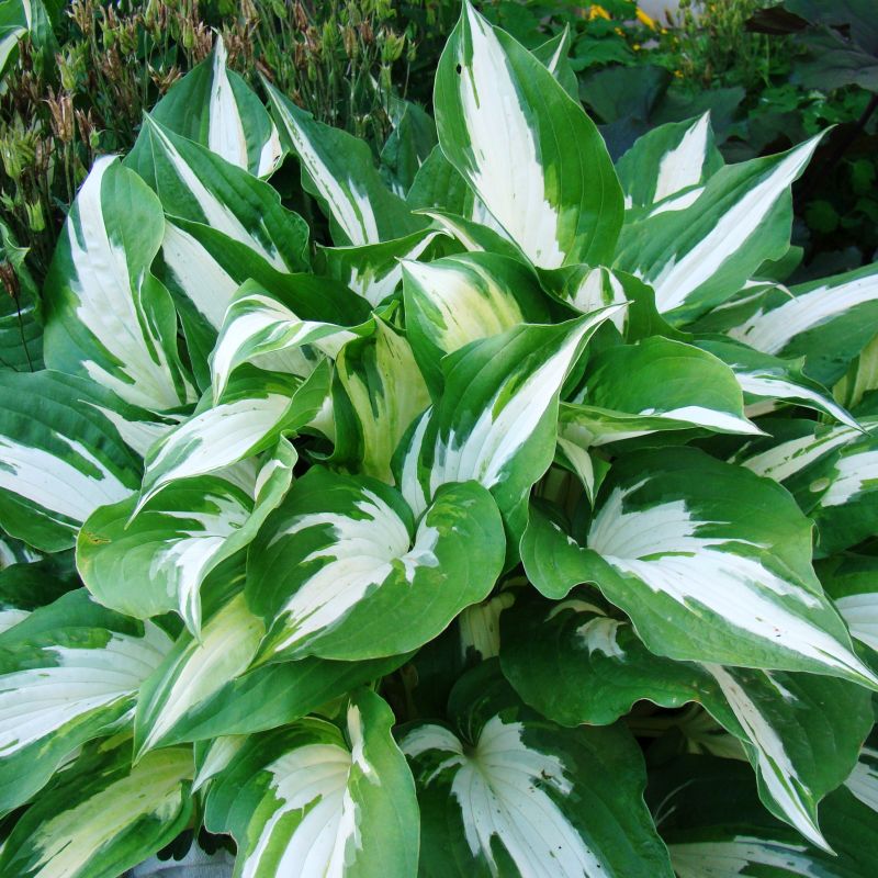 Hosta Loyalist, Hosta ‘Loyalist’, is one of the best white centered hostas ever! This reverse variegated sport of the famous Hosta ‘Patriot’ has dark green leaf margins which contrasts nicely with the nearly pure white centers.