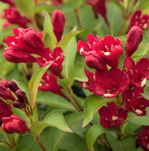 Discover Weigela all over again with this mid-sized, ornamental shrub. Any place you put a Maroon Swoon draws your eye with its fantastic color and long-lasting display that bursts onto the scene in spring and persist throughout the summer and into autumn.