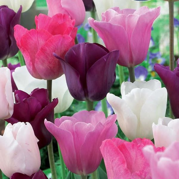 This mix offers tulips in a variety of purples that will have you reminiscing of twilights spent trying to catch the first twinkle of a star. With violets ranging from a deep wine all the way to the lightest of lavenders, it is truly a wondrous sight.