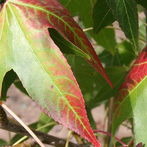 The star-shaped leaves are a showy attribute in their own right all season long. Once the nights get cooler, the autumn color comes on in a brilliant display of bold red and warm yellows.