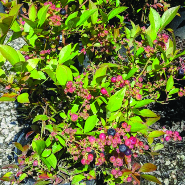 The United States Department of Agriculture has done it again. Nocturne Blueberry (Vaccinium x ‘Nocturne’ PP #24,832) is an incredibly showy variety with young berries in a hue that ranges from salmon to mango. When ripe, the color deepens to a black in a beautiful display.