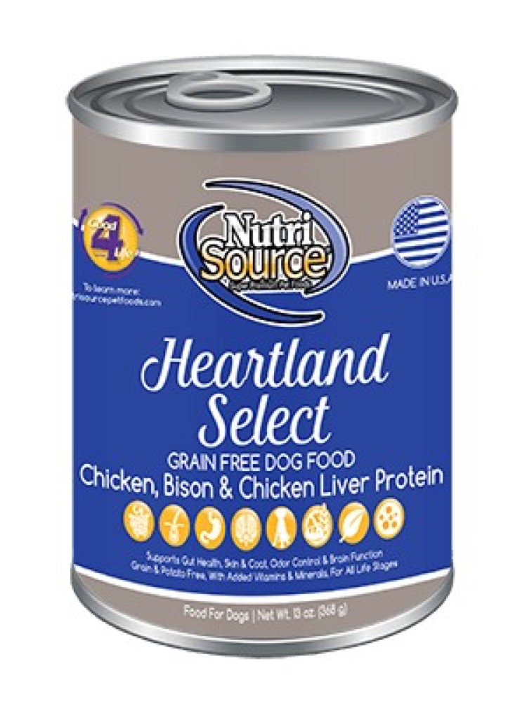 NUTRI SOURCE 93002 13 OZ GRAIN FREE HEARTLAND SELECT DOG FOOD MP12