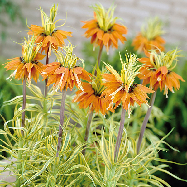 Because royalty deserves a crown, the Orange Crown Imperial supplies her own in late spring. This easy to grow, but conversation-worthy plant frequently rises above all other garden blooms. This stunning plant works well as a single-color mass planting or as an unbelievable spring accent. With its carrot-orange clusters of flowers and variegated foliage, the Orange Crown Imperial is ready to rule the yard.