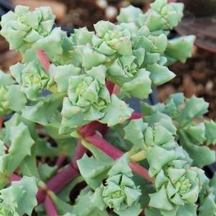 This plant does well in full sun and well-drained soil. It thrives in the driest of regions. Its leaves sprout from dark pink, wiry stems. This gorgeous succulent has leaves that will turn red around the edges during the sunniest time of year.